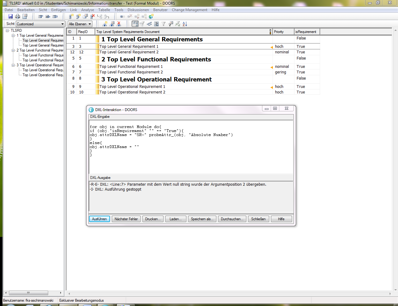I'm completelly new to DOORS and DXL. The problem I have is the same, as allready described here: