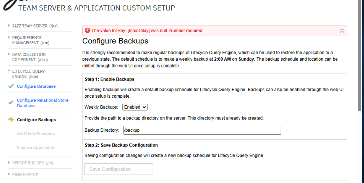 In the meantime, a workaround is to disable the weekly backups here, let the setup wizard finish, and then go to LQE and enable backups after install.