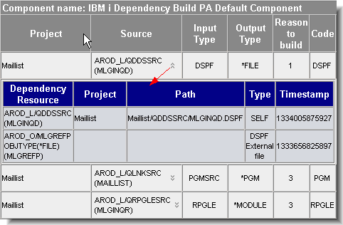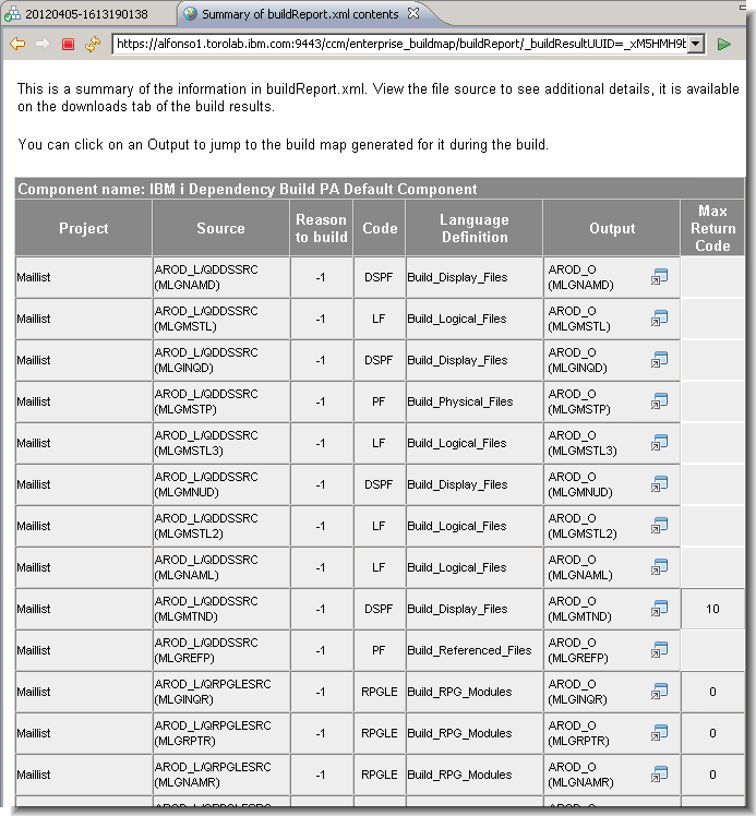 Figure 23: Link to build report - Use this report to identify the objects that would have been built if this were an actual build. You can also use this report to examine the dependency set for each buildable resource with a reason to build value of less than 6. The screen capture below shows the dependencies for the MLGINQD DSPF object.