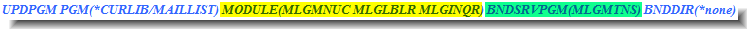 - Find link-edit files for the mailing list application in the QLNKSRC source physical file. They contain build specifications for the programs and service programs: MAILLIST.PGM, MLGMTNS.SRVPGM, and MLGRPTS.SRVPGM.