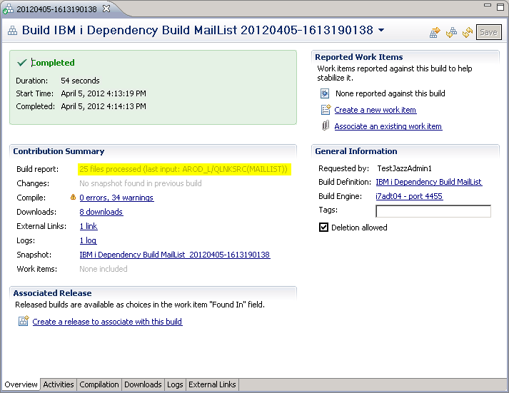 Figure 25: The Overview tab - Click the link next to Build report to view your build report. Notice that only the expected items were built.