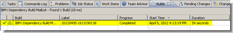 The section demonstrates the build support for the new Rational Team Concert IBM i Dependency Build template.- Submit the build. Right-click the build definition, select Request Build…., and click Submit on the resulting dialog box.
