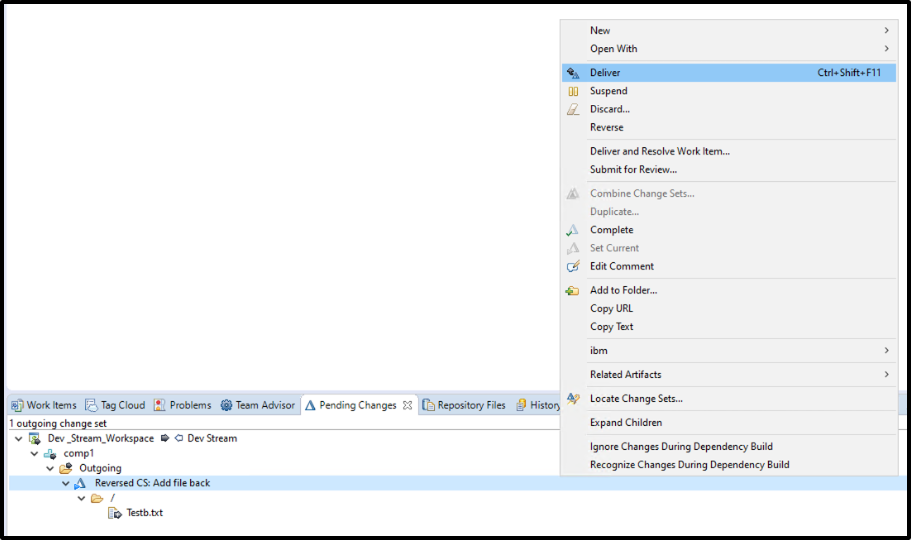 5. Deliver the Reversal Change Set : After testing and validation, deliver the new change set to the stream—cleanly rolling back the original change without disruption.