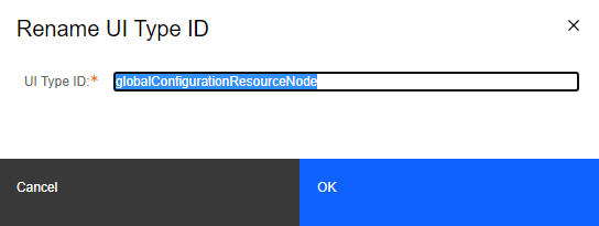 To rename a UI type: 1. Open the view in the edit mode. 2. Drag the required artifact onto the view canvas. 3. Right-click the artifact in the view, and click Edit Node. The Nodes dialog box opens. 4. On the UI Type tab, click the pencil icon that is next to the UI Type list. The UI Types dialog box opens. 5. From the UI Type list, select the UI type that you want to rename. 6. Click the Rename icon. 7. In the Rename UI Type ID window, enter the ID for the UI type, and click OK.