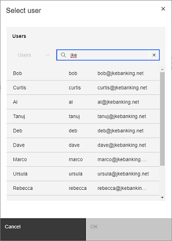 Image of the classic people picker component: ![]() Image of the new people picker component (single-user mode): ![]() Image of the new people picker component (multiple-user mode):